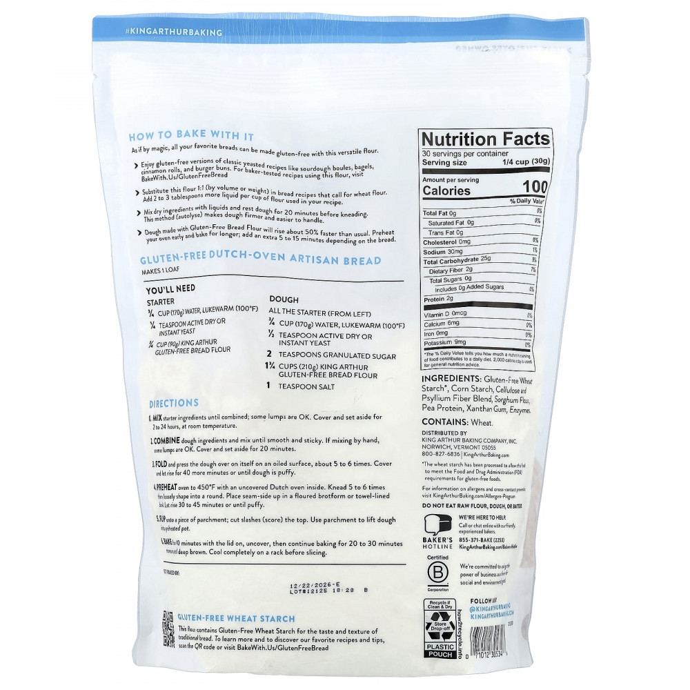 Пшеничный крахмал без глютена: Эта мука содержит пшеничный крахмал без глютена, который имеет вкус и текстуру традиционного хлеба.