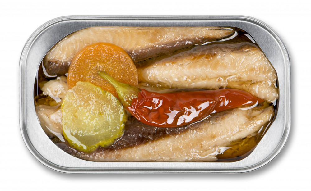 Сардины, оливковое масло, красный перец чили, морковь, маринованный огурец, соль, ароматизатор чили.