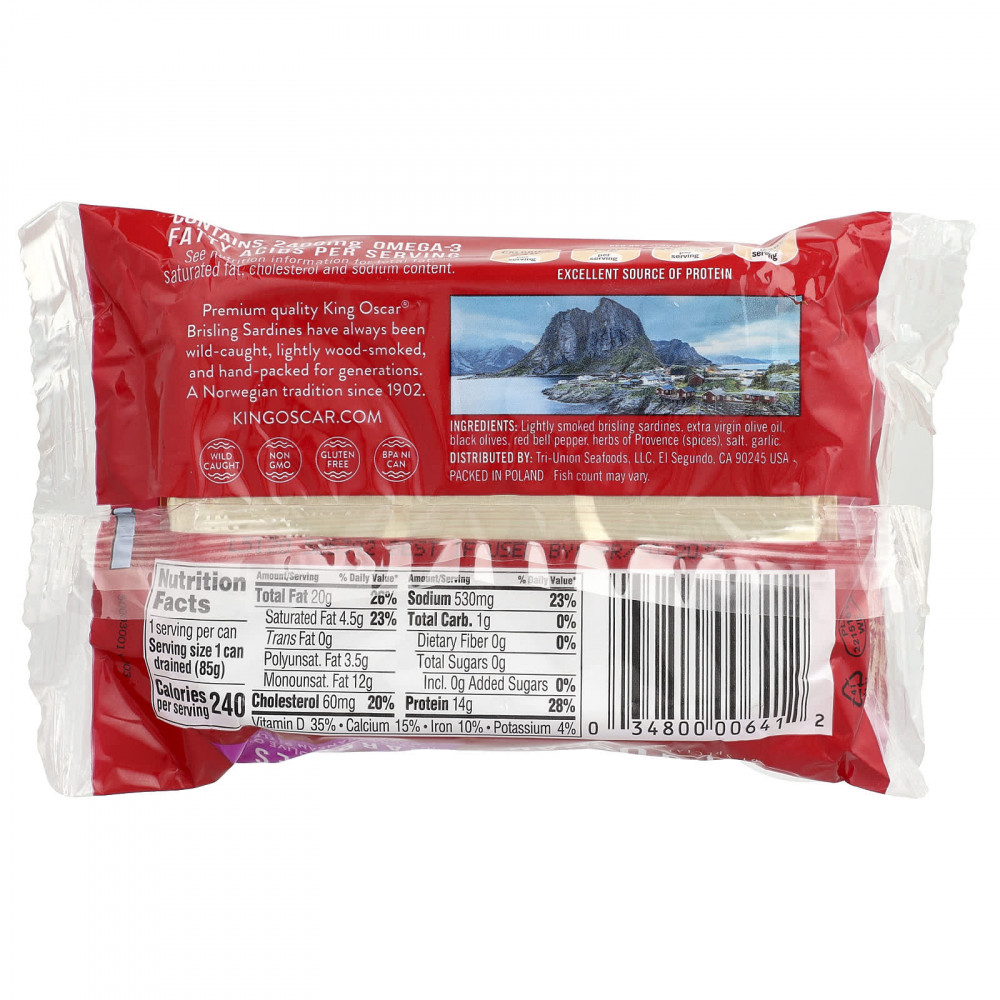 Сардины King Oscar® Brisling Sardines премиального качества всегда производятся из дикого улова, слегка копченые на дровах, и упаковываются вручную на протяжении поколений.Норвежская традиция с 1902 года.