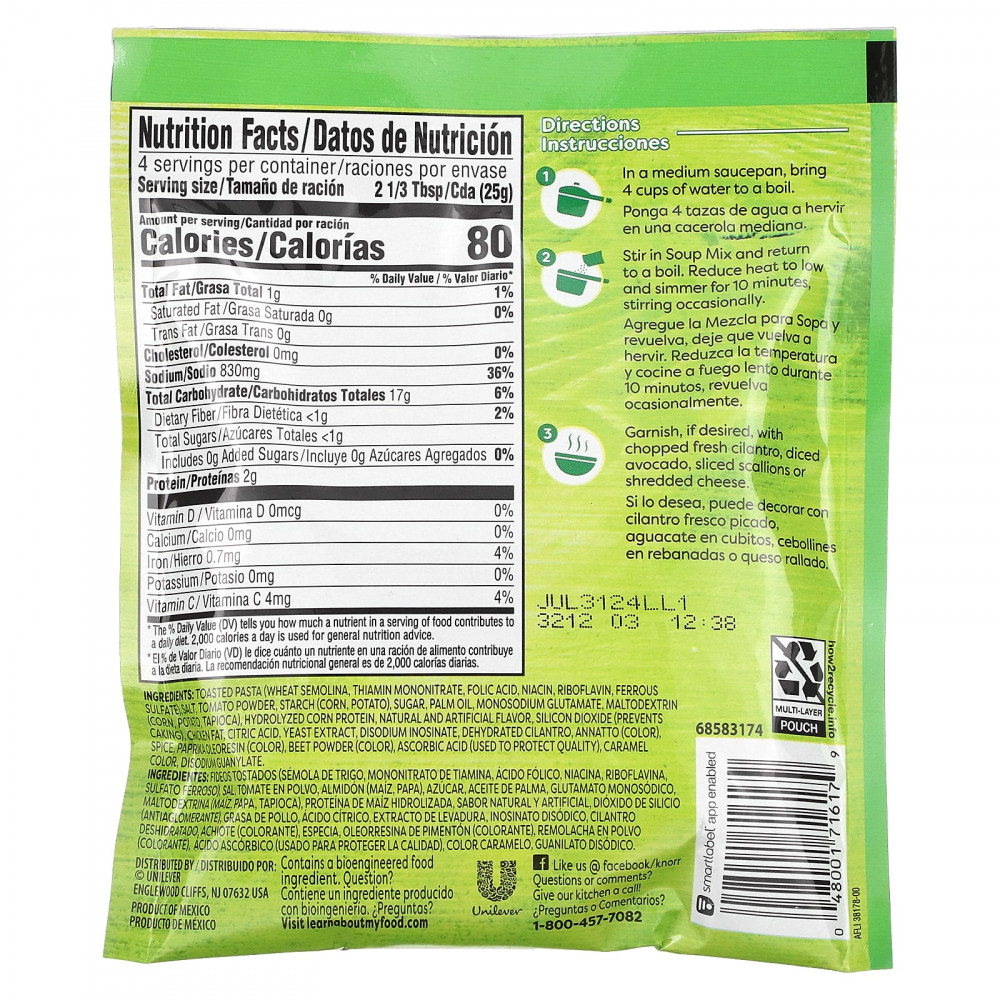 Поджаренные макароны (пшеничная манка, мононитрат тиамина, фолиевая кислота, ниацин, рибофлавин, сульфат железа), соль, порошок из томатов, крахмал (кукурузный, картофель), сахара, пальмовое масло, однонатриевый глутамат, мальтодекстрин (кукурузный, картофель, тапиока), гидролизованный кукурузный белок, натуральные и искусственные ароматизаторы, диоксид кремния (предотвращает слеживание), куриный жир, лимонная кислота, экстракт дрожжей, динатрия инозинат, обезвоженная кинза, аннато (краситель), специи, олеорезин паприки (краситель), порошок из свеклы (краситель), аскорбиновая кислота (используется для защиты качества), краситель «Карамель», динатрия гуанилат.
