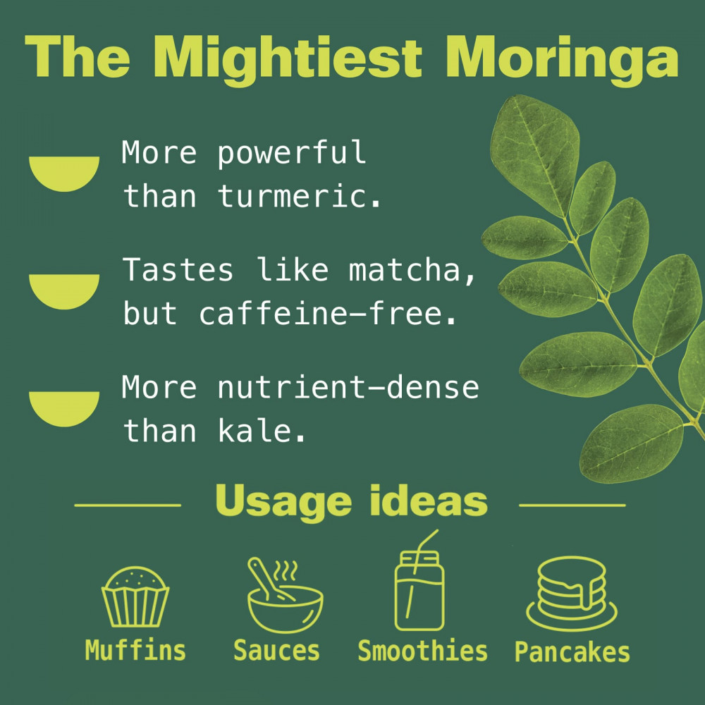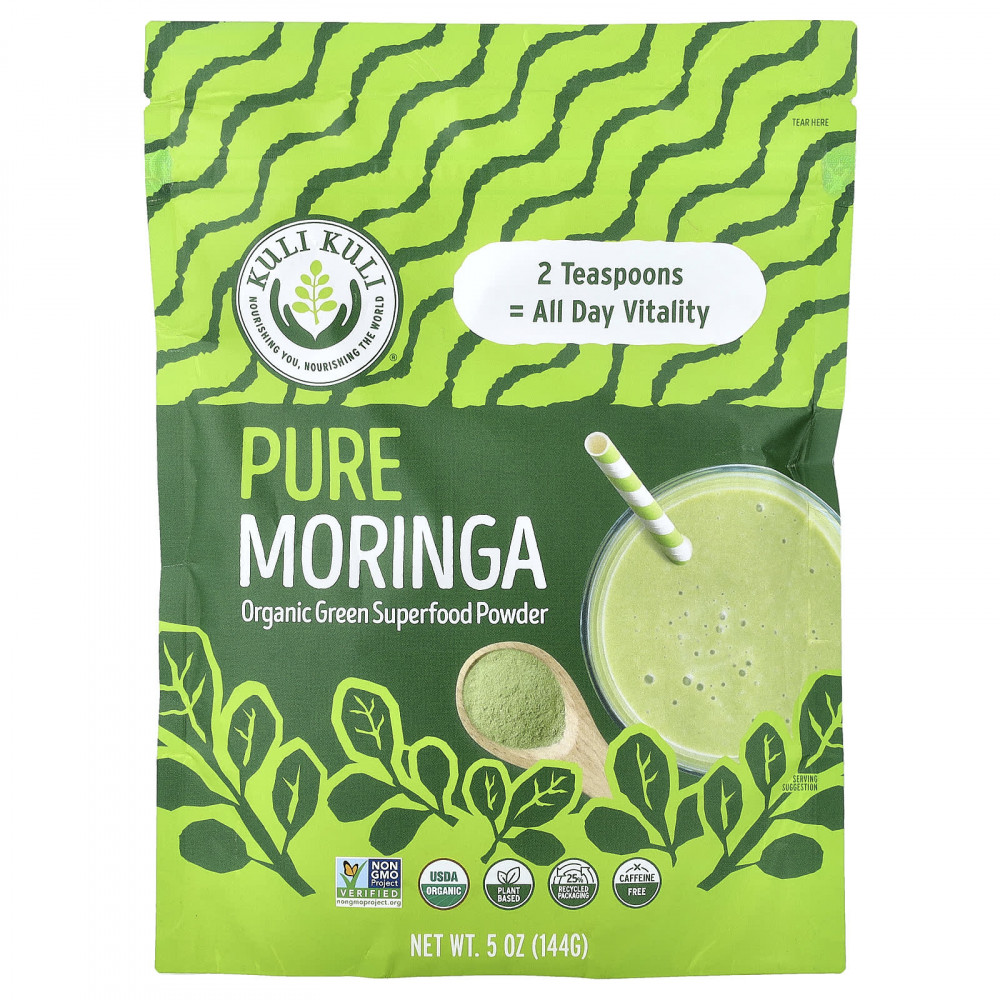 Моринга — это суперфуд в виде зеленых листьев, богатый необходимыми питательными веществами. Независимые исследования показали, что моринга Kuli Kuli содержит более 150 растительных биоактивных соединений и является более биоактивным, чем моринга других ведущих брендов. Добавьте эту восстанавливающую зелень в свой любимый смузи, напиток или еду, чтобы получить питание для всего организма и придать энергии.