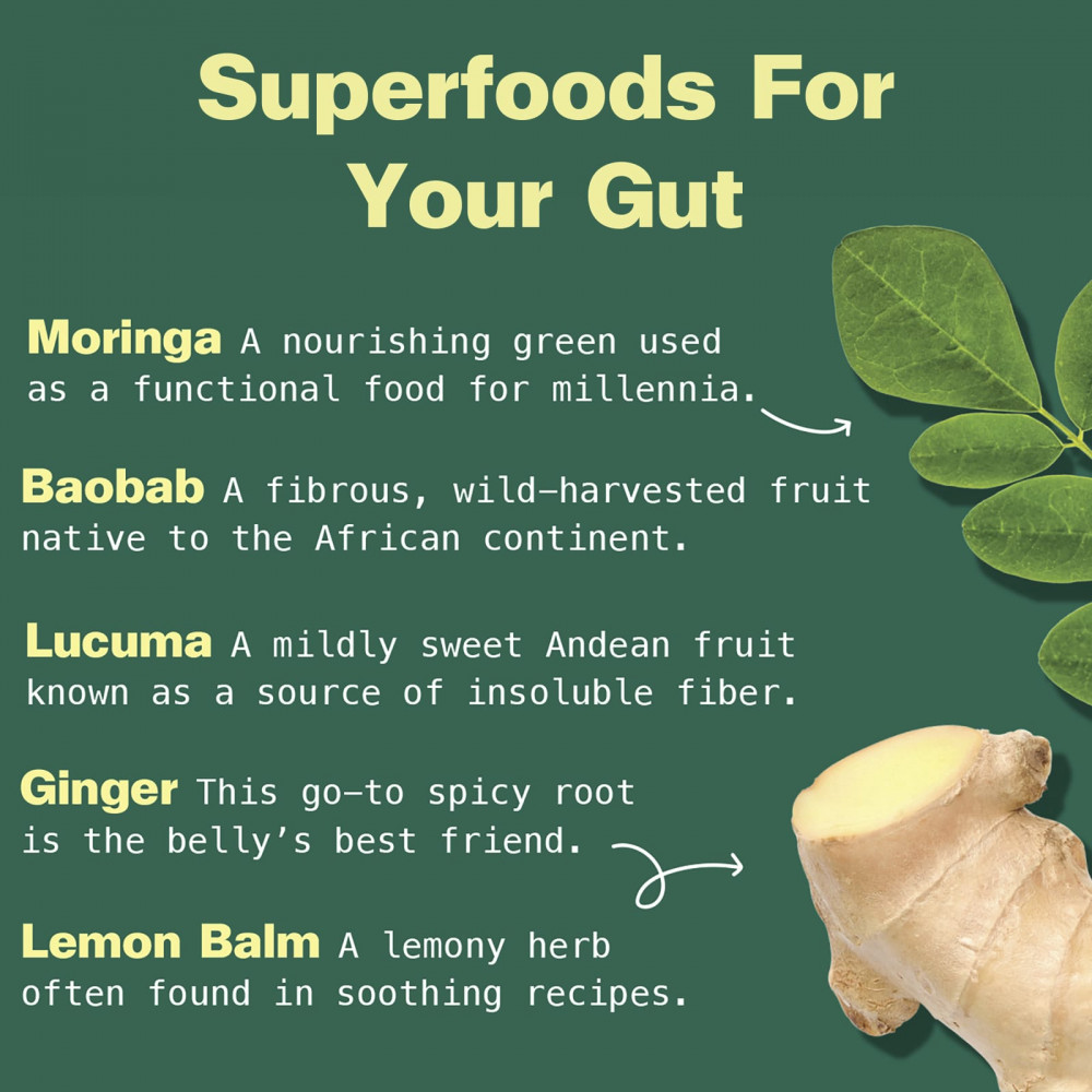 Gut Bliss — это эффективная смесь пяти суперфудов, успокаивающих живот, которые, как считается, поддерживают нормальную работу пищеварительной системы. Натуральные ингредиенты, без искусственных подсластителей и наполнителей, обеспечивают только полезные свойства для кишечника.
