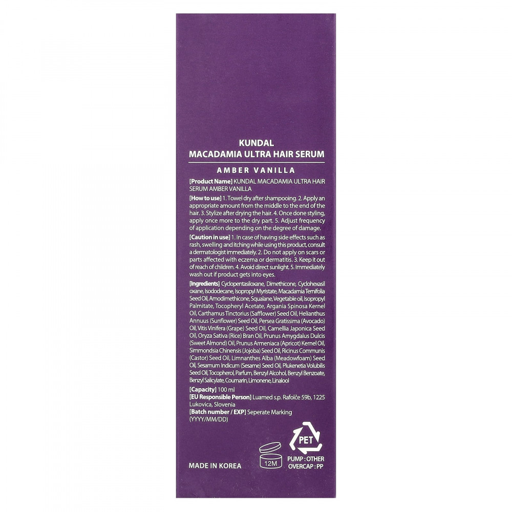 Циклопентасилоксан, диметикон, циклогексасилоксан, изододекан, изопропил миристат, масло макадамии (Macadamia ternifolia), амодиметикон, сквалан, растительное масло, изопропилпальмитат, токоферилацетат, аргановое масло (Argania spinosa), масло семян сафлора (Carthamus tinctorius), подсолнечное масло (Helianthus annuus), масло авокадо (Persea gratissima), масло из виноградных косточек (Vitis vinifera), масло из семян камелии японской (Camellia japonica), масло из рисовых отрубей (Oryza sativa), масло сладкого миндаля (Prunus amygdalus dulcis), масло из косточек абрикоса (Prunus armeniaca), масло из семян жожоба (Simmondsia chinensis), касторовое масло (Ricinus communis), масло из семян пенника лугового (Limnanthes alba), кунжутное масло (Sesamum indicum), масло семян Plukenetia volubilis, токоферол, отдушка, бензиловый спирт, бензилбензоат, бензилсалицилат, кумарин, лимонена, линалоол.