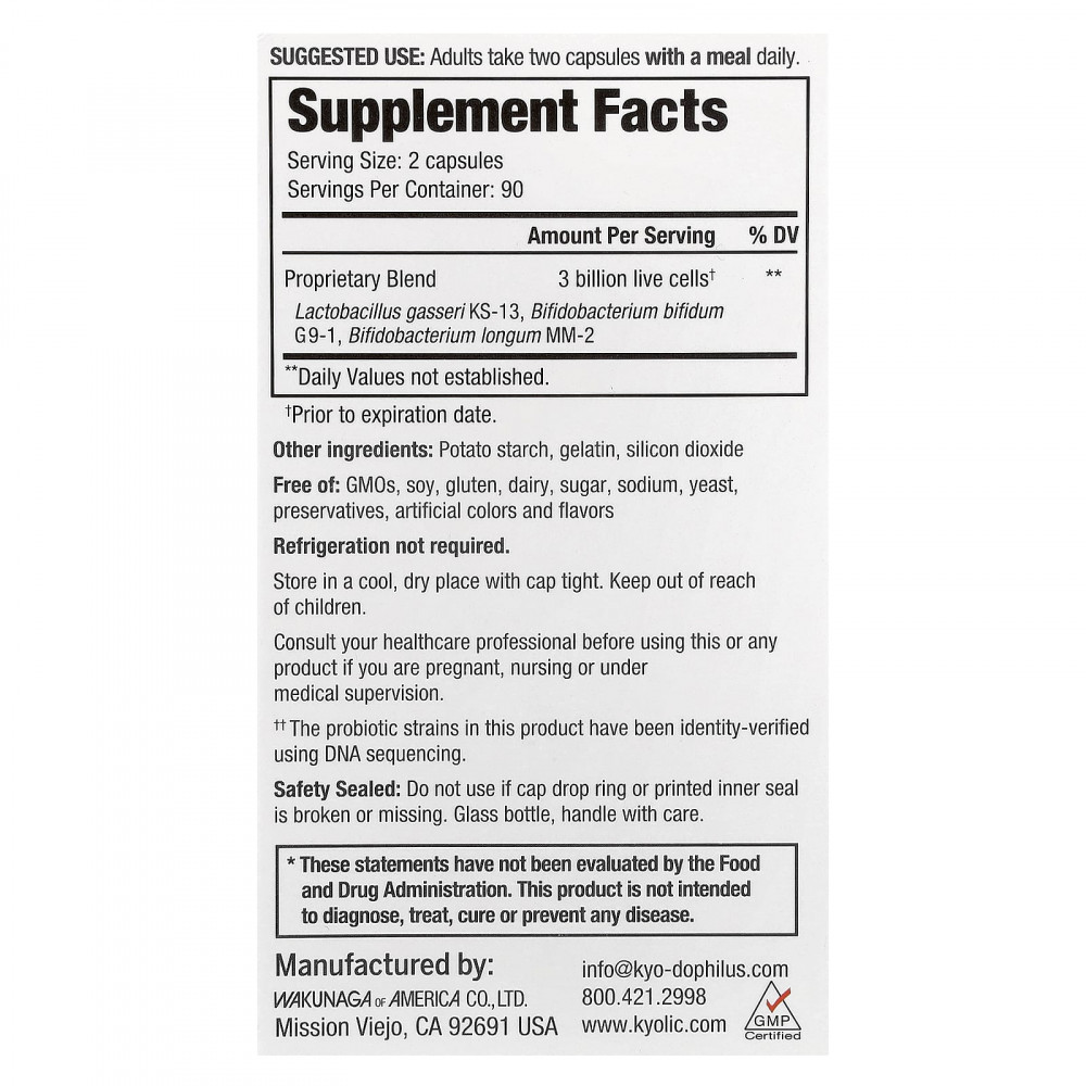 Принимайте по две капсулы ежедневного пробиотика Kyo-Dophilus во время еды, чтобы укрепить здоровье желудочно-кишечного тракта и иммунную систему, а также улучшить общее самочувствие.