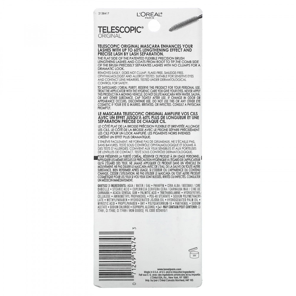 Оригинальная тушь с телескопическими свойствами выделяет ваши ресницы, обеспечивая эффект удлинения до 60% и аккуратно разделяя их.