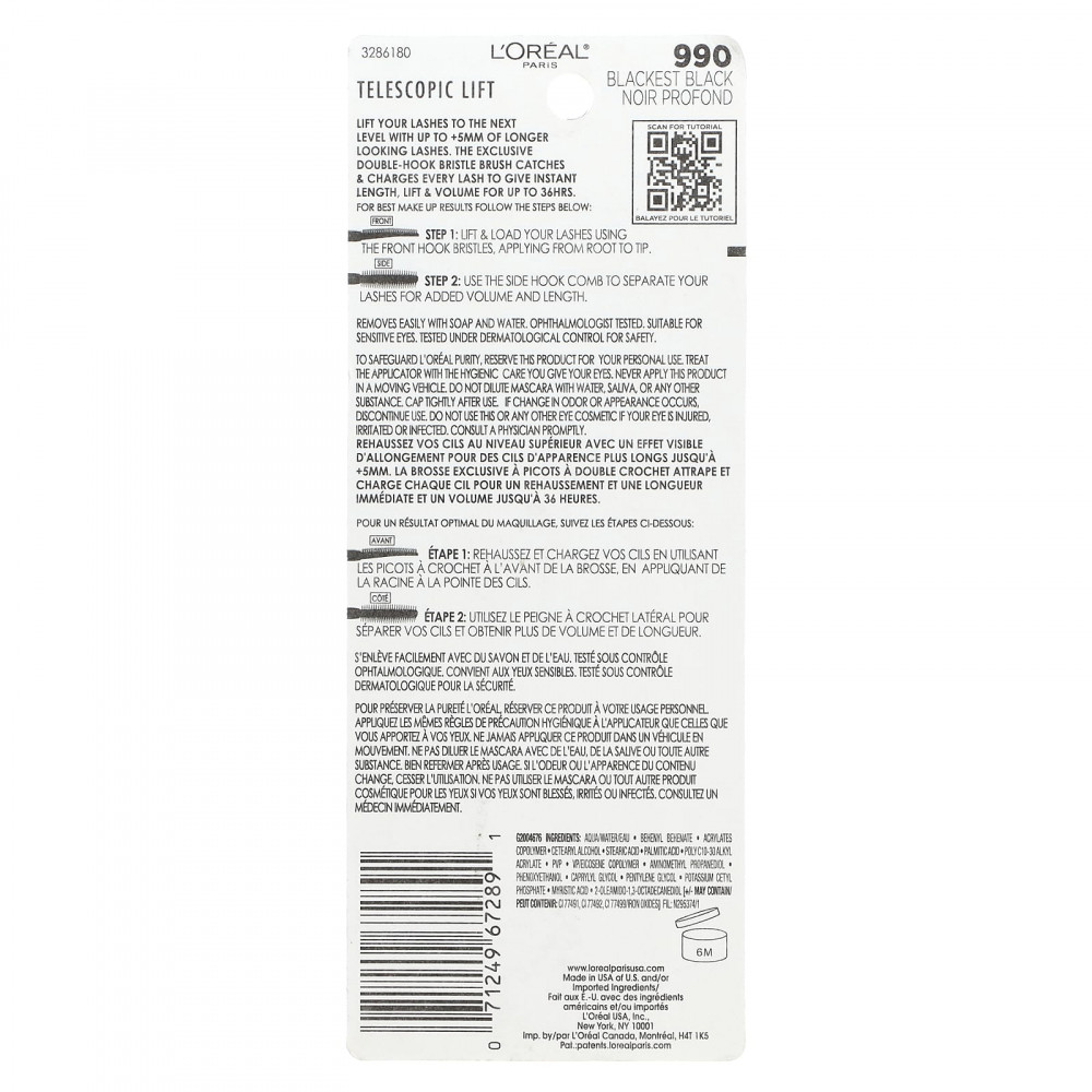 Чтобы сохранить чистоту L'ORÉAL, вы можете использовать этот продукт в личных целях. При уходе за щеточкой соблюдайте те же санитарно-гигиенические нормы, что и при уходе за глазами. Не используйте в движущемся транспортном средстве. Не разбавляйте тушь водой, слюной или любым другим веществом. Плотно закрывайте продукт после использования. Не используйте тушь, если изменился ее запах или внешний вид. Не используйте это или любое другое косметическое средство для глаз, если ваши глаза повреждены, раздражены или заражены. Немедленно обратитесь к врачу.