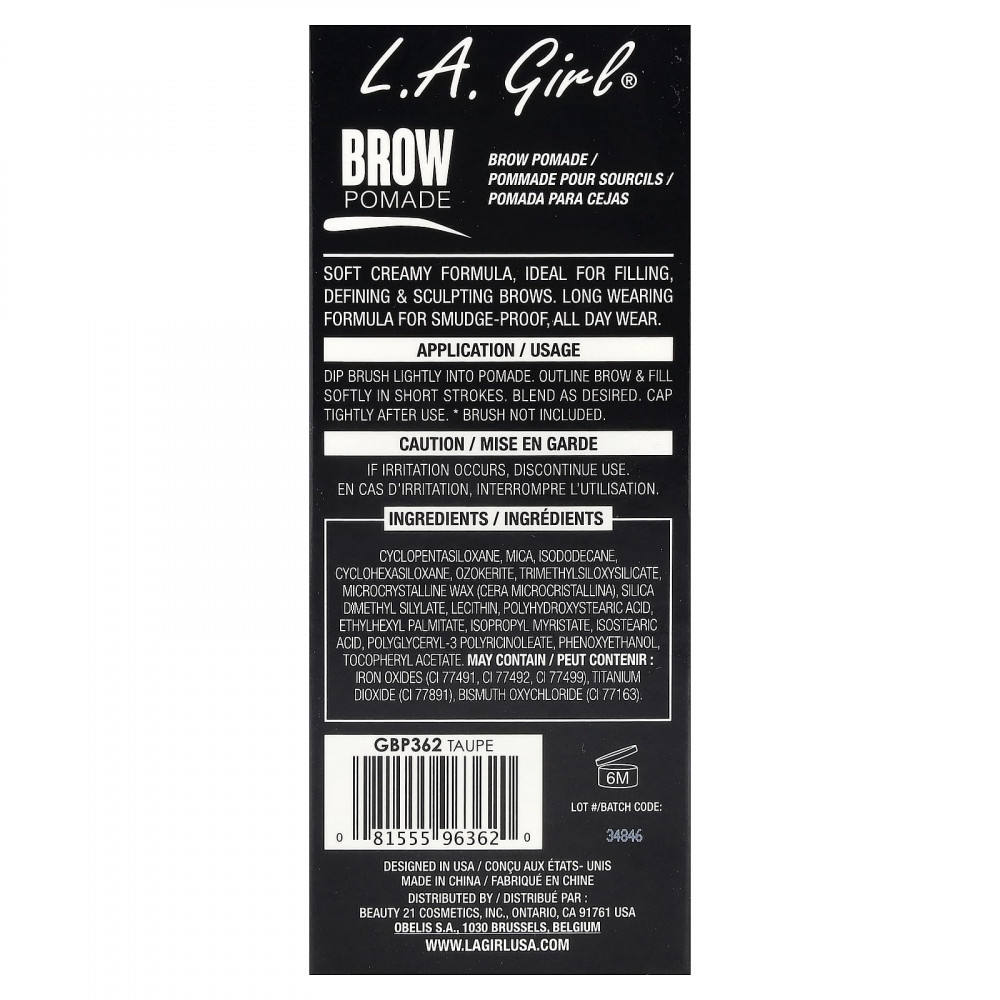 Слегка окуните кисть в помаду. Мягко обведите брови короткими мазками. Размешайте по желанию. Плотно закрывайте упаковку после использования.
