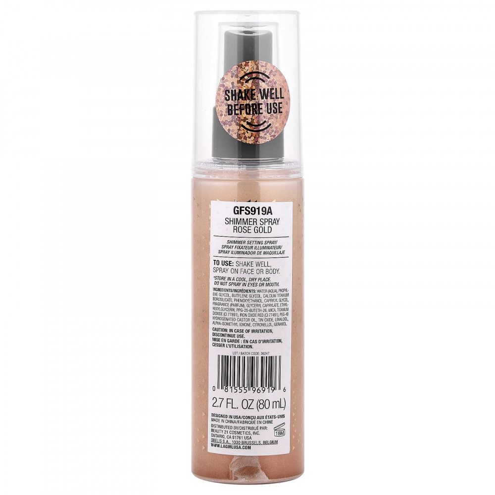 LA Спрей для сияния волос. Закрепите свой образ с помощью нового спрея для сияния волос, который специально разработан для того, чтобы сохранять свежесть макияжа в течение всего дня. Придайте коже великолепное сияние с помощью двух новых спреев для мерцания. Каждый спрей содержит перламутровый шиммер для максимального сияния кожи. Идеально подходит для лица и тела!