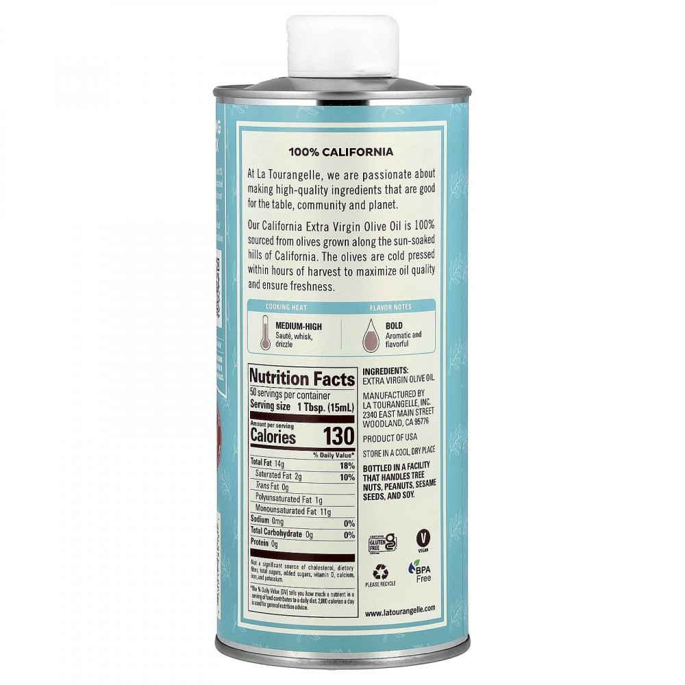 Наше оливковое масло высшего качества California Extra Virgin на 100% получено из оливок, выращенных на залитых солнцем холмах Калифорнии. Оливки подвергаются холодному отжиму в течение нескольких часов после сбора, чтобы обеспечить максимальное качество масла и свежесть.