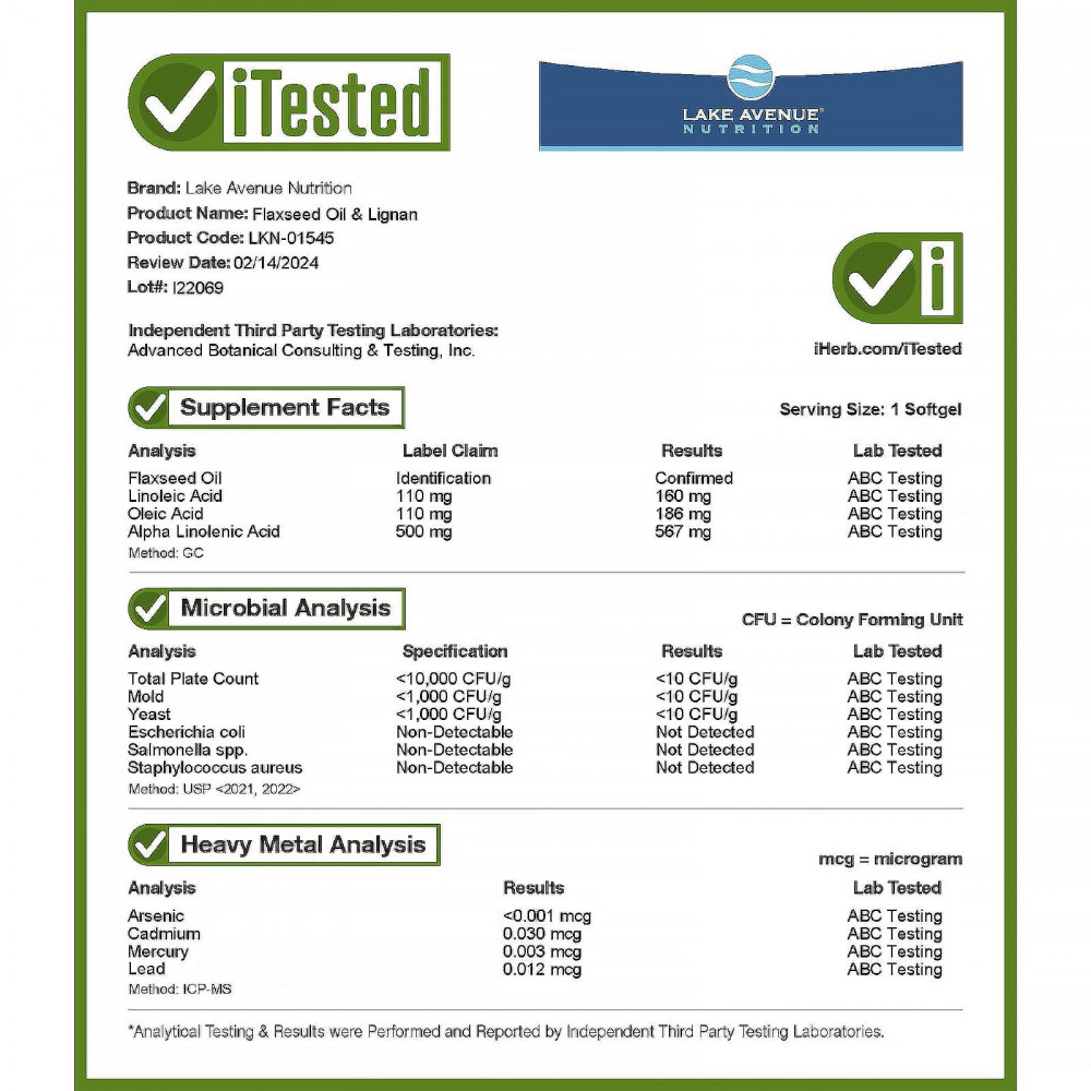 Органическое льняное масло холодного отжима с лигнаном от Lake Avenue Nutrition содержит органическое льняное масло в растительных капсулах. Технология холодного отжима помогает сохранить в масле питательную ценность омега-3 жирных кислот во время экстракции.