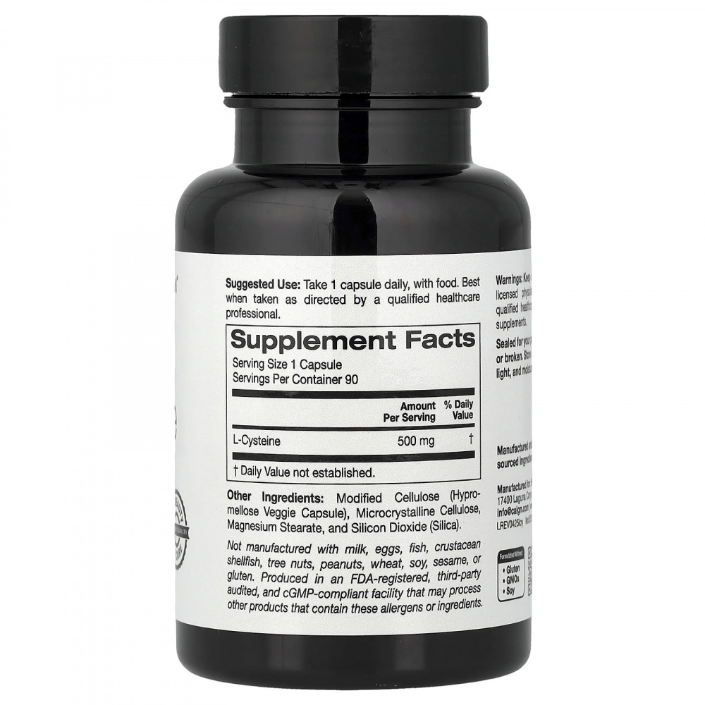 California Gold Nutrition® L-цистеин содержит эту заменимую аминокислоту в растительных капсулах. Добавка подходит для вегетарианцев и не содержит глютена, ГМО и сои.