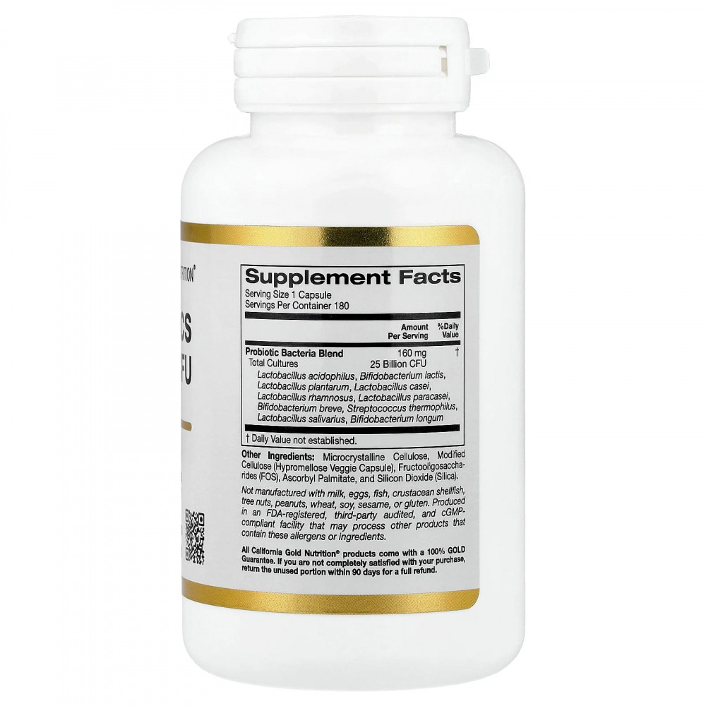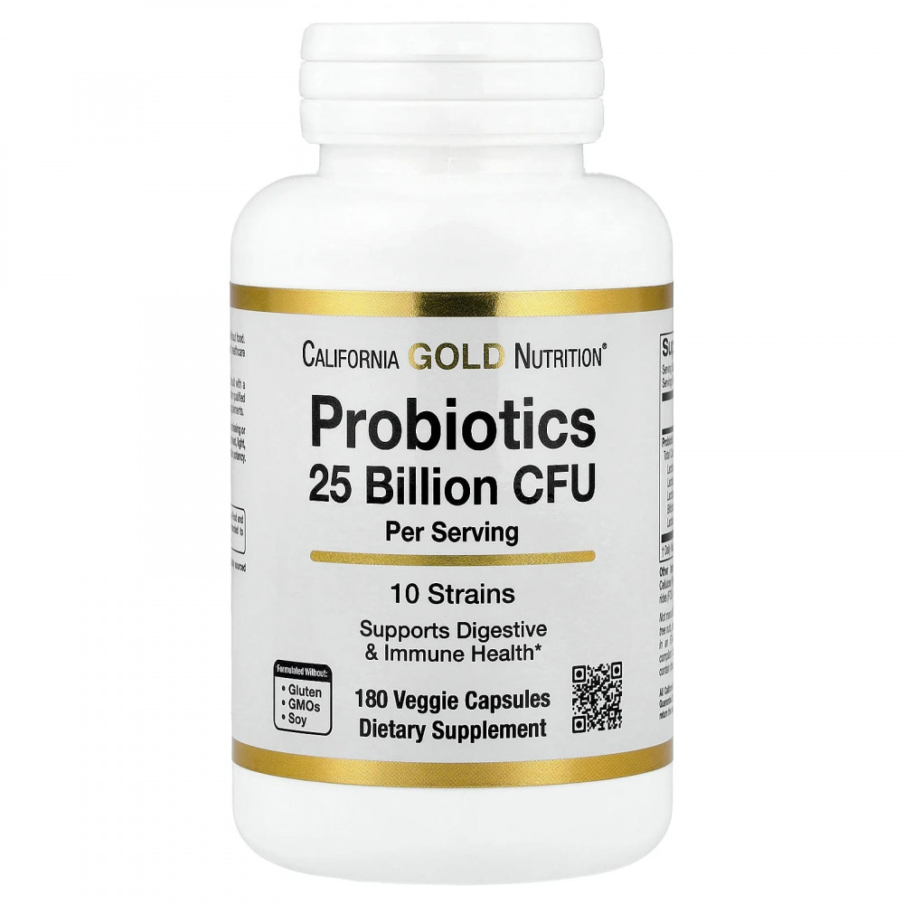 Пробиотики от California Gold Nutrition® содержат смесь из 10 штаммов пробиотиков (25 млрд КОЕ) в растительных капсулах. Одна упаковка рассчитана на приём в течение примерно 6 месяцев (при соблюдении рекомендованной дозы).
