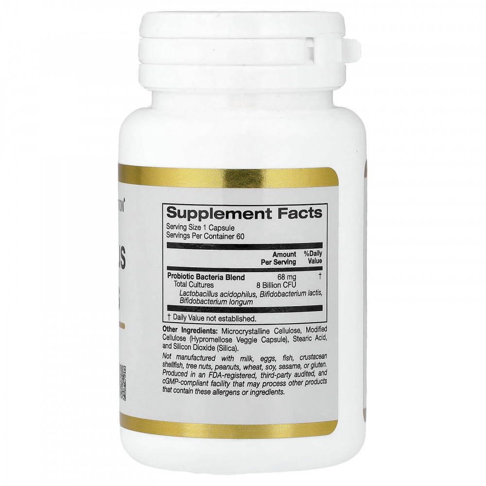 Ацидофильные лактобактерии и бифидобактерии от California Gold Nutrition® содержат смесь пробиотиков (8 млрд КОЕ) в растительных капсулах для поддержки кишечной флоры и здоровья пищеварительной системы*.