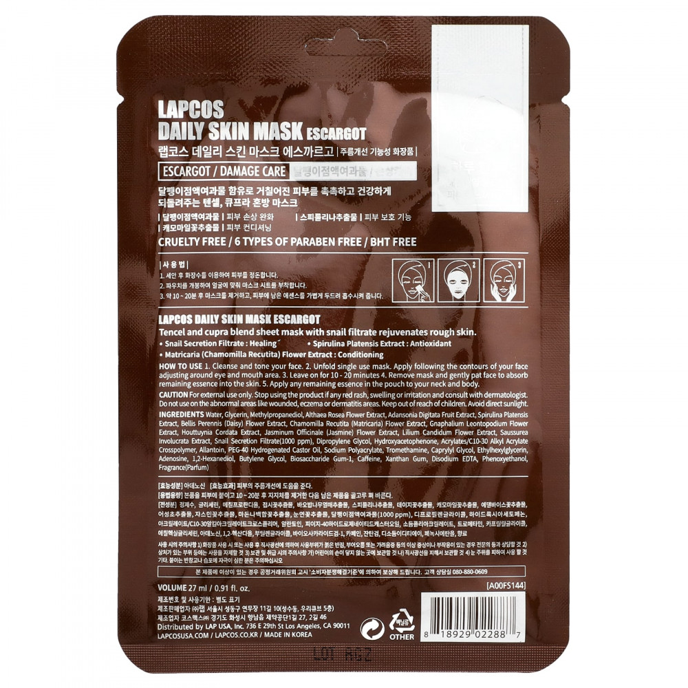 Тканевая маска из смеси Tencel, меди и фильтрата улитки омолаживает огрубевшую кожу.