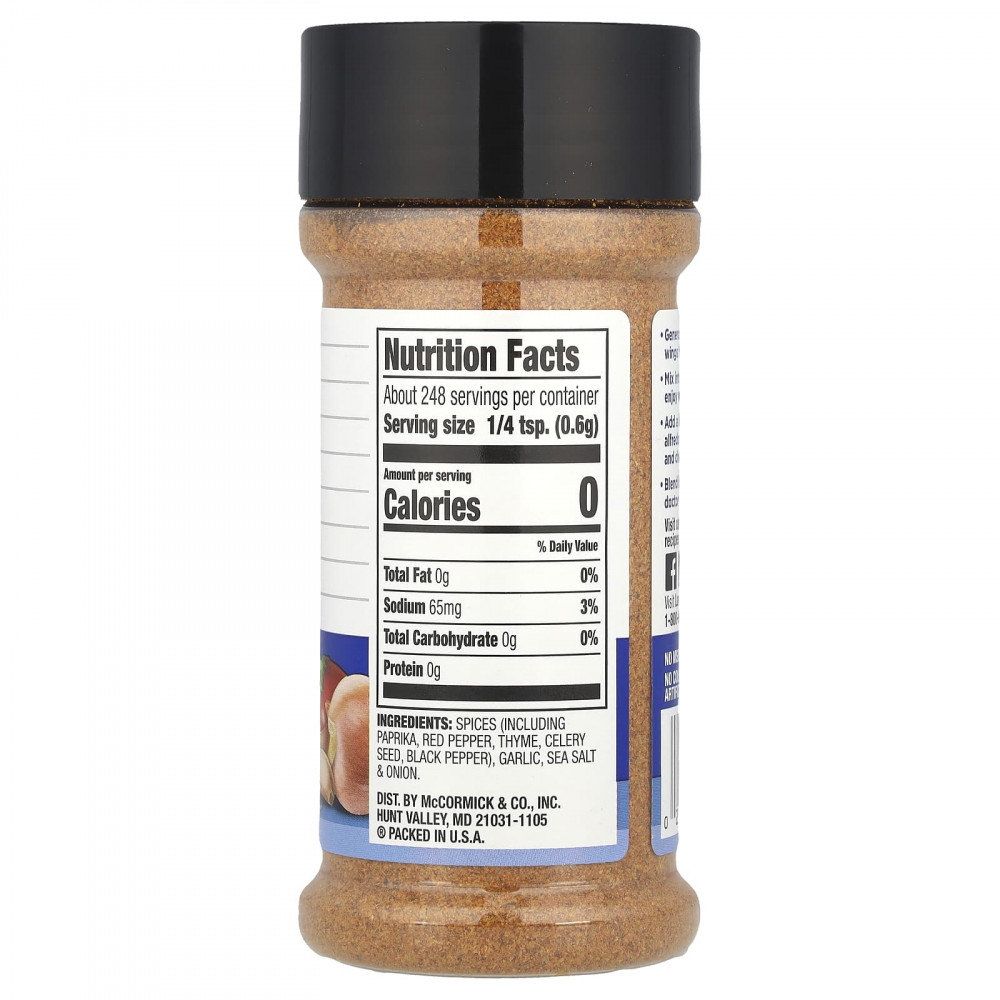 Специи (включая перец, красный перец, чабрец, семена сельдерея, черный перец), чеснок, морская соль и лук.