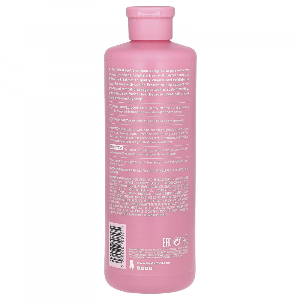 Шампунь против ломкости*, разработанный для дополнительного ухода за чувствительной кожей головы. Без сульфатов, с гликолевой кислотой и экстрактом коры ивы для мягкого очищения и отшелушивания кожи головы. Содержит протеин люпина, который помогает поддерживать рост волос и бороться с ломкостью, а также защищает кожу головы. Богатый антиоксидантами белый чай. Потому что хорошие волосы всегда начинаются со здоровой кожи головы!