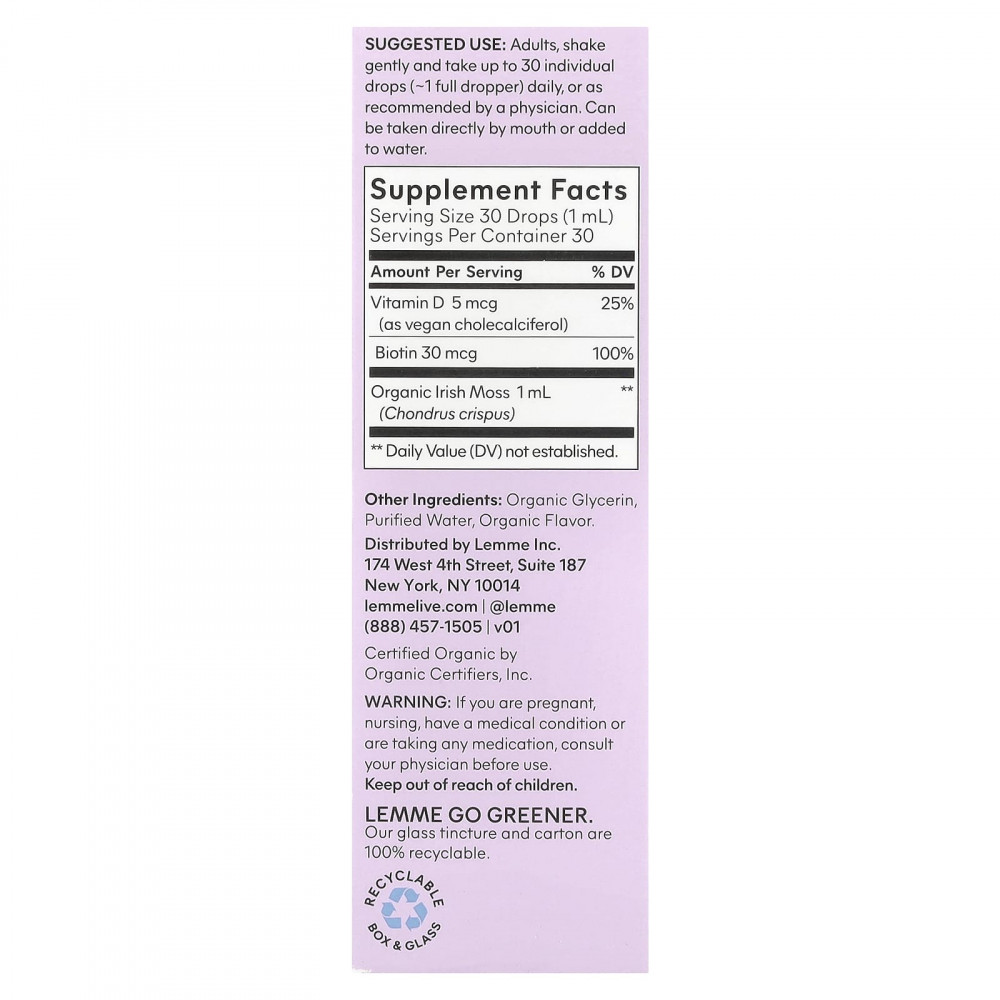 Наши жидкие капли из органического ирландского морского мха с D3 и биотином поддерживают здоровье кожи и волос, иммунную функцию, здоровье мозга и жизненную силу.