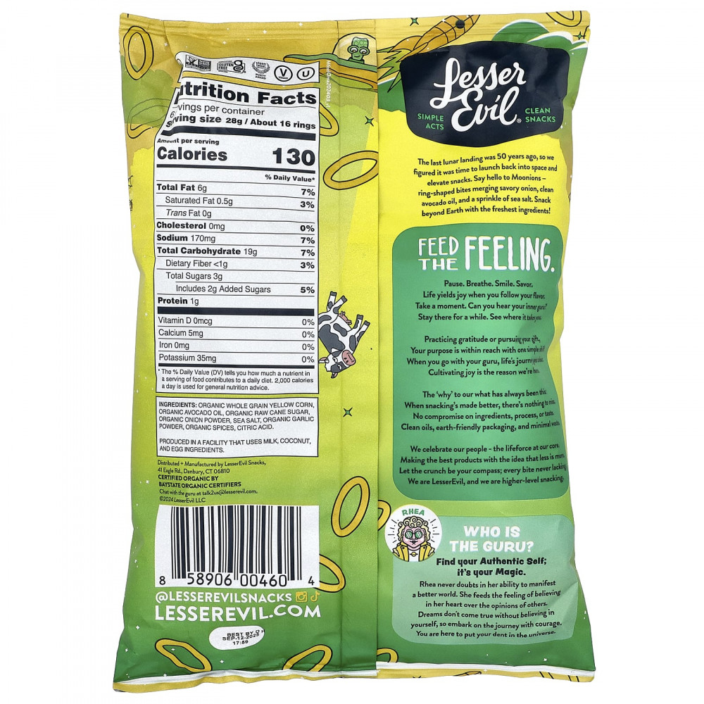 Последний раз мы приземлялись на Луну 50 лет назад, поэтому мы решили, что пора отправляться обратно в Космос и выращивать снеки. Познакомьтесь с Moonion — кольцеобразными кусочками, в которых сочетаются пикантный лук, чистое масло авокадо и щепотка морской соли. Перекусите невероятным снеком из самых свежих ингредиентов!
