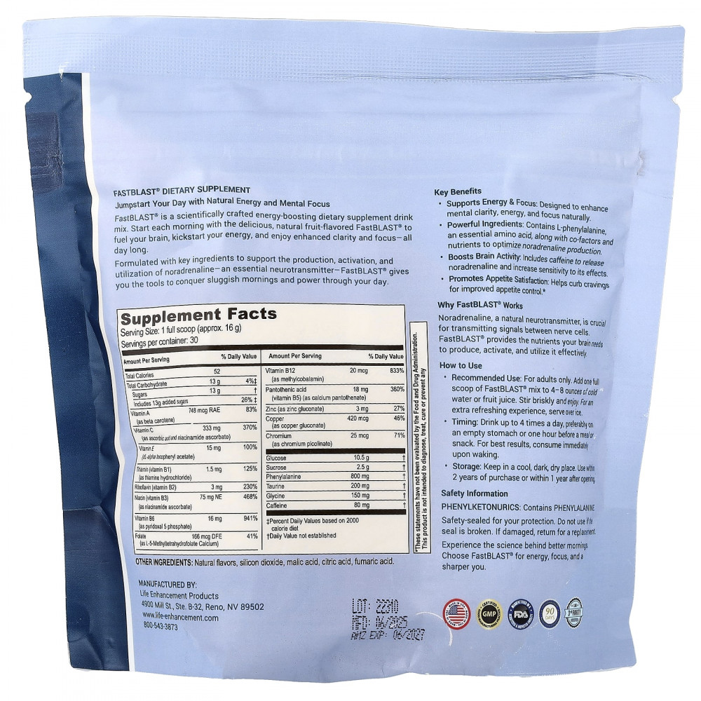 FastBLAST® — это научно разработанная смесь для приготовления напитка с пищевой добавкой, повышающей уровень энергии. Начинайте каждое утро с восхитительного натурального фруктового вкуса FastBLAST®, который обеспечит энергию для мозга, заряд энергии, ясность сознания и концентрацию внимания в течение всего дня.