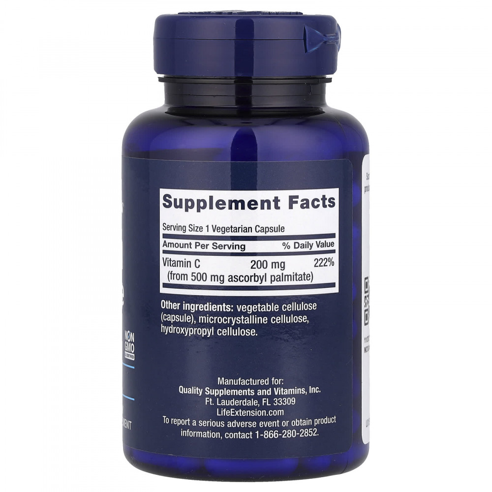 | Витамин C (из 500 мг аскорбил пальмитата) | 200 мг | 222% |