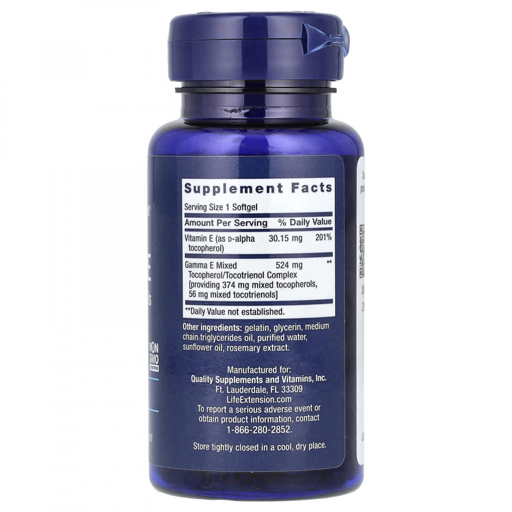 Добавка со смешанными токоферолами и токотриенолами Gamma E содержит полный спектр соединений витамина Е, обеспечивающих мощные антиоксидантные свойства.