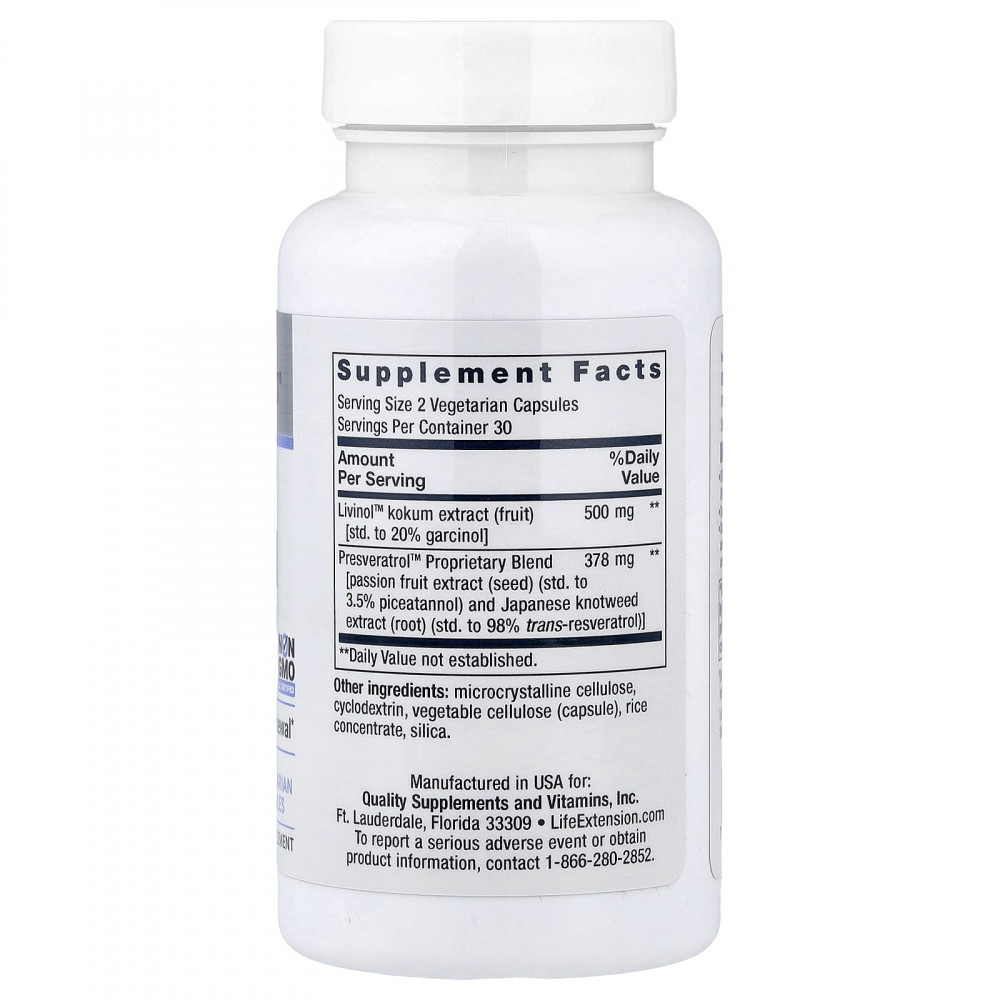 | Экстракт плодов кокума Livinol™ [станд. до 20% гарцинола] | 500 мг | ** |