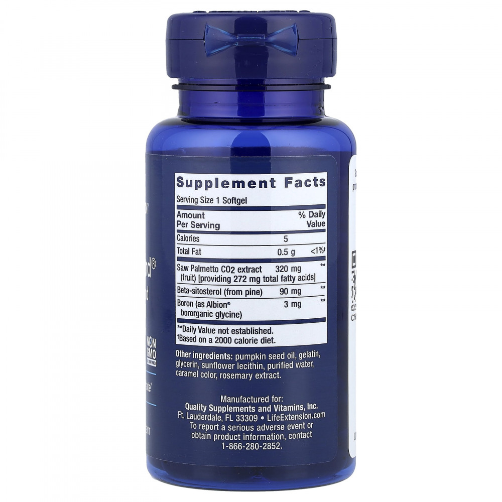 | Экстракт серенои CO2 (плоды) [содержит 272 мг всего жирных кислот] | 320 мг | ** |