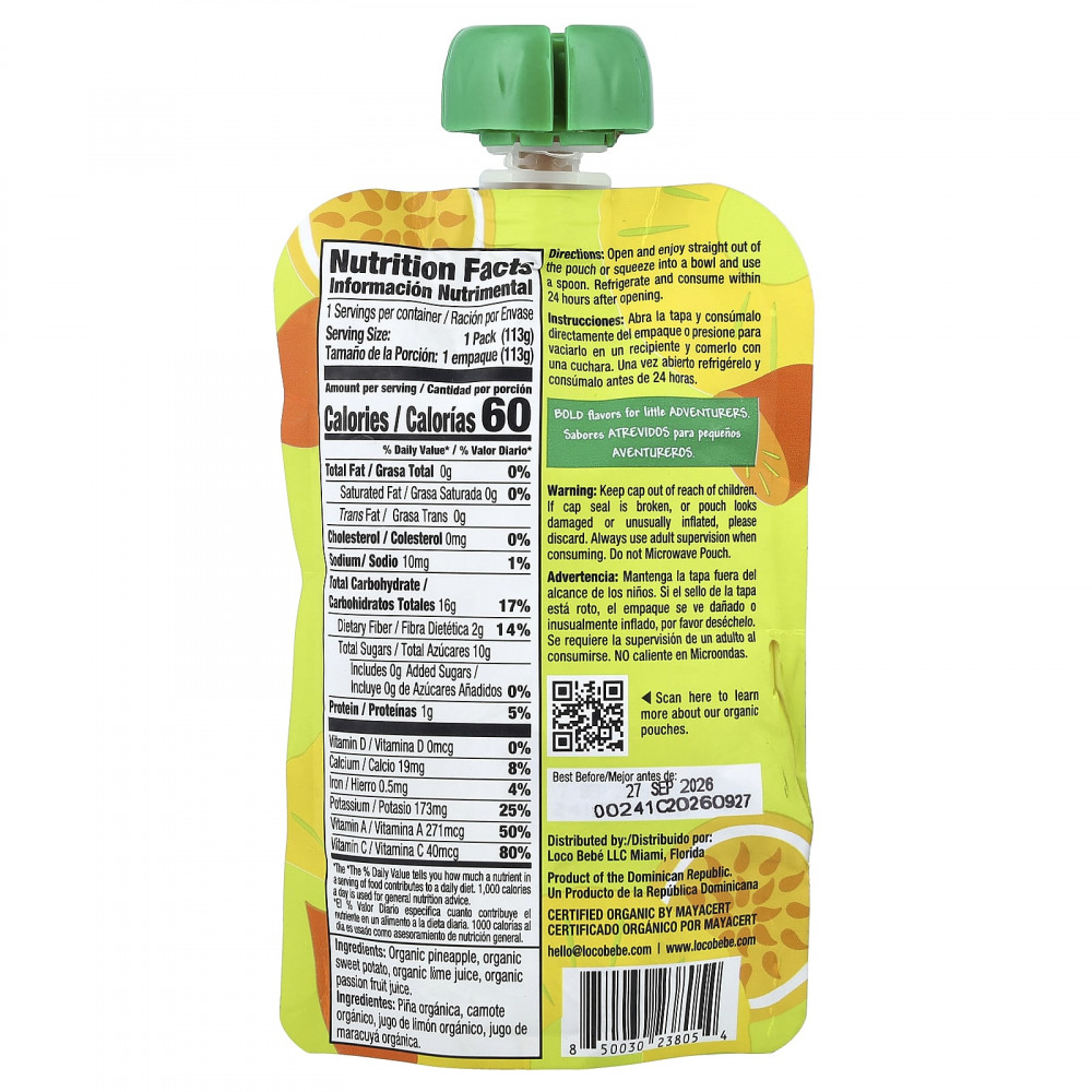 Органический ананас, органический батат, органический сок лайма, органический сок маракуйи.