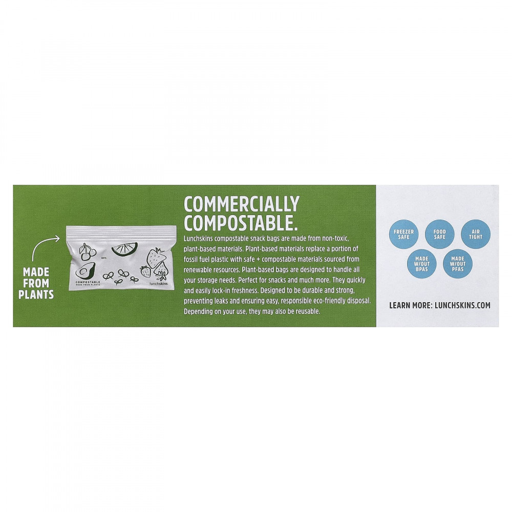 Биоразлагаемые пакеты для снеков Lunchskins изготовлены из нетоксичных растительных материалов. Материалы растительного происхождения заменяют часть пластика ископаемого топлива безопасными биоразлагаемыми материалами, полученными из возобновляемых ресурсов. Пакеты на растительной основе разработаны для всех потребностей хранения. Идеально подходит для снеков и многого другого. Они быстро и легко сохраняют свежесть. Долговечный и прочный продукт, предотвращающий протечки и обеспечивающий легкую и ответственную экологически безопасную утилизацию. В зависимости от применения, они могут быть многоразового использования.