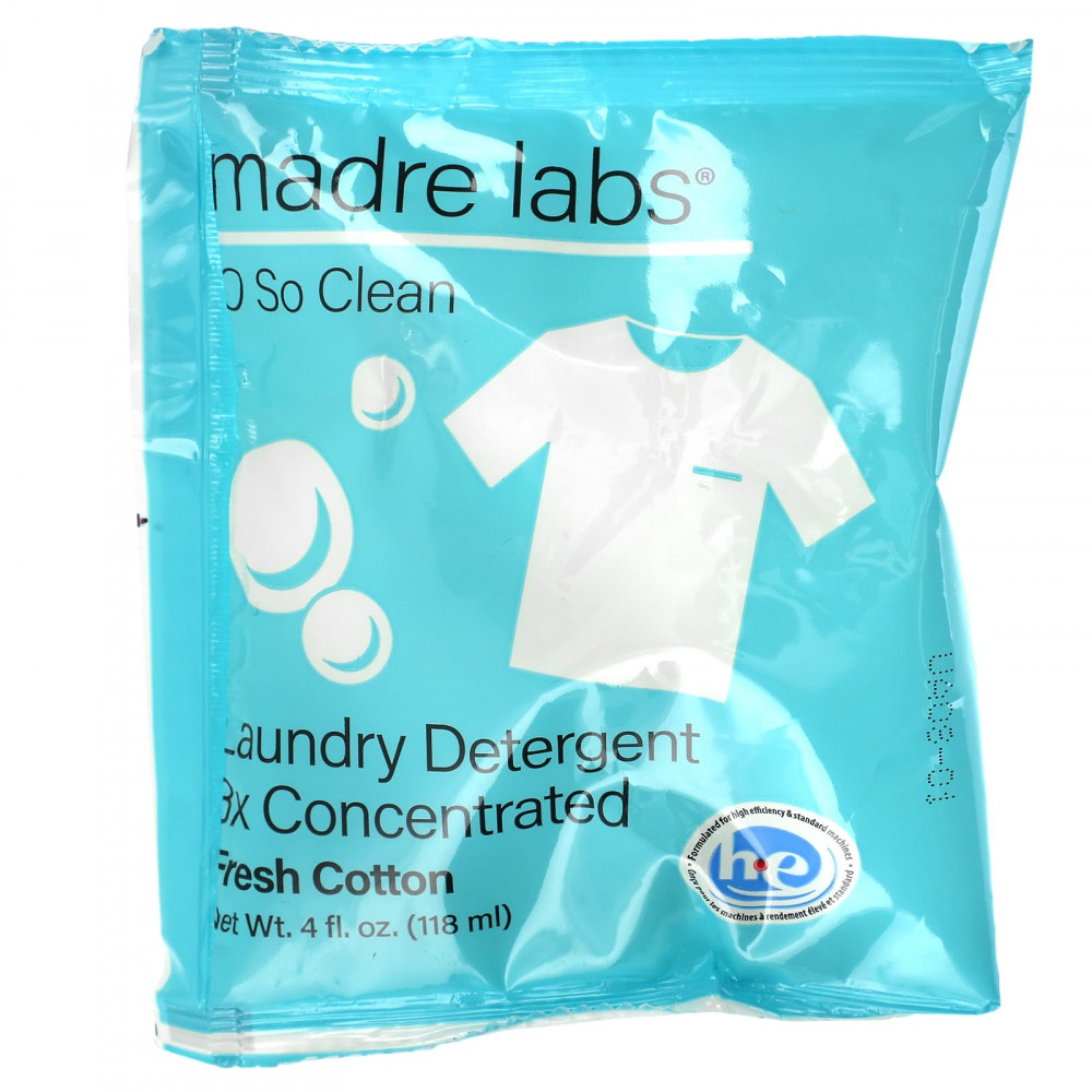 Пакетики со средством для стирки от Madre Labs® содержат средство с тройной концентрацией усиленного действия, которое удаляет стойкие загрязнения и пятна, сохраняет яркость цветных вещей и осветляет белые вещи, оставляя их чистыми и без запаха — O So Clean.