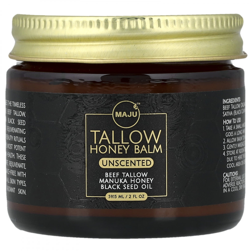 Бальзам с медом без запаха MAJU's воплощает в себе неподвластную времени мудрость древнего ухода за кожей. Изготовлено из чистого говяжьего жира, обогащено маслом черного тмина холодного отжима, известным своими увлажняющими и омолаживающими свойствами для кожи. Оно восходит к легендарным ритуалам красоты Клеопатры в Египте. оптимальное здоровье кожи. Эти эффективные ингредиенты объединяются для увлажнения, омоложения и глубокого питания кожи. Этот нежный бальзам без отдушек, с незначительным натуральным запахом, идеально подходит для всех типов кожи, делая ее более гладкой, здоровой и сияющей.