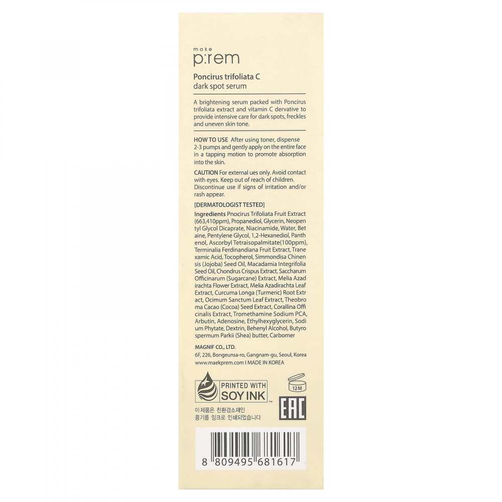 Осветляющая сыворотка, содержащая экстракт Poncirus trifoliata и производные витамина C, обеспечивает интенсивный уход за темными пятнами, веснушками и неровным тоном кожи.