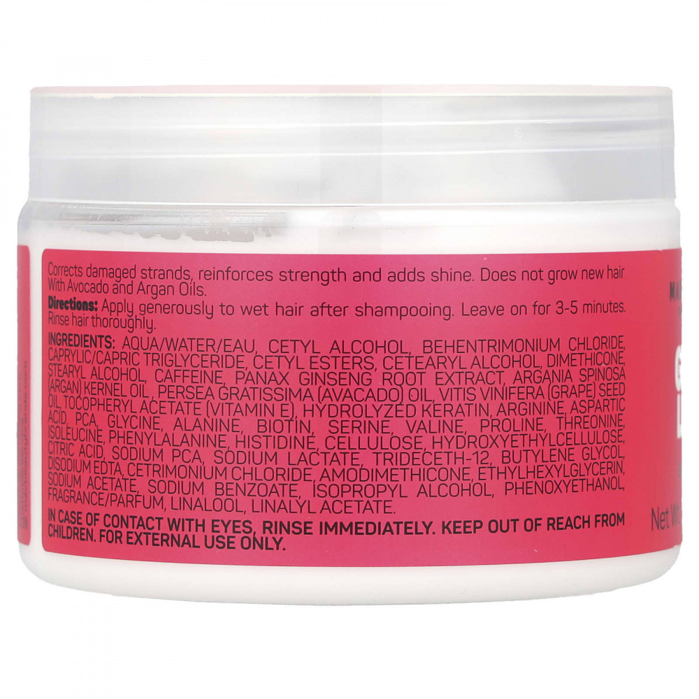 Корректирует поврежденные пряди, усиливает силу и придает блеск. Не отращивает волосы благодаря маслам авокадо и арганы.
