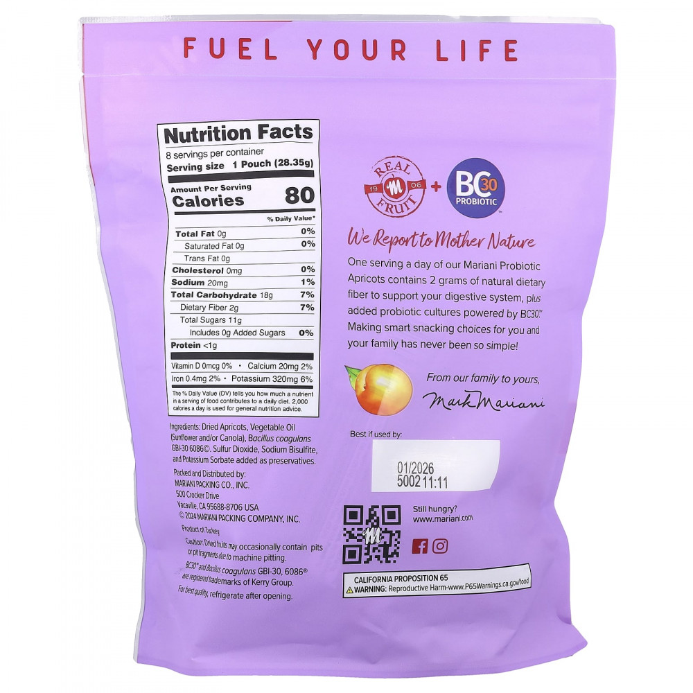 Одна порция наших абрикосов с пробиотиками от Mariani содержит 2 грамма натуральной пищевой клетчатки для поддержки работы пищеварительной системы, а также пробиотические культуры с BC30. Еще никогда выбор разумного снека для вас и вашей семьи не был таким простым!