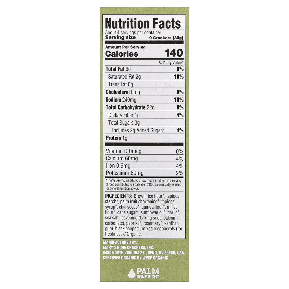 Наши крекеры REAL THIN Crackers™ могут быть легкими, но они очень хрустящие благодаря богатым питательными веществами семенам чиа. Чиа, известные своей древней историей использования в качестве источника энергии, обеспечивают заряд энергии в каждом кусочке. С каждым крекером вы получаете снек, такой же безглютеновый и жирный, как и ваш путь — идеально сбалансированный, чтобы вы были сильными в любом приключении. Крекеры RTC, изготовленные из полезных ингредиентов, сделают ваши снеки хрустящими и соответствуют стандартам качества и вкуса Mary's.