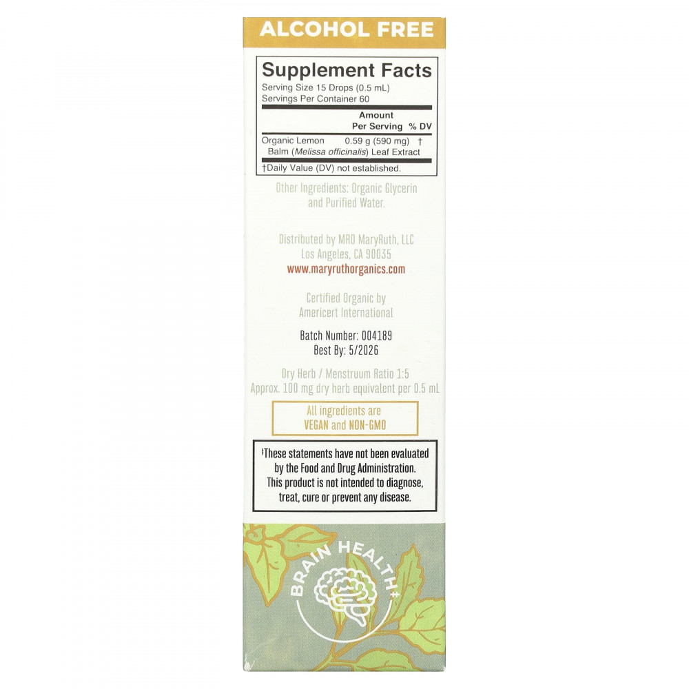 | Экстракт листьев органической мелиссы лекарственной (Melissa officinalis) | 0,59 г (590 мг) | † |