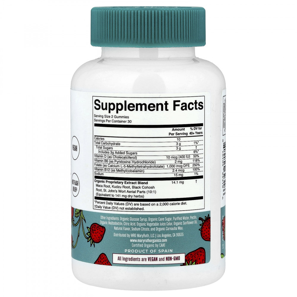 Поддерживает настроение и приливы во время менопаузы! Вкусные клубничные жевательные мармеладки на основе традиционных трав для поддержки здоровья женщин в возрасте 40 лет и старше в период менопаузы.