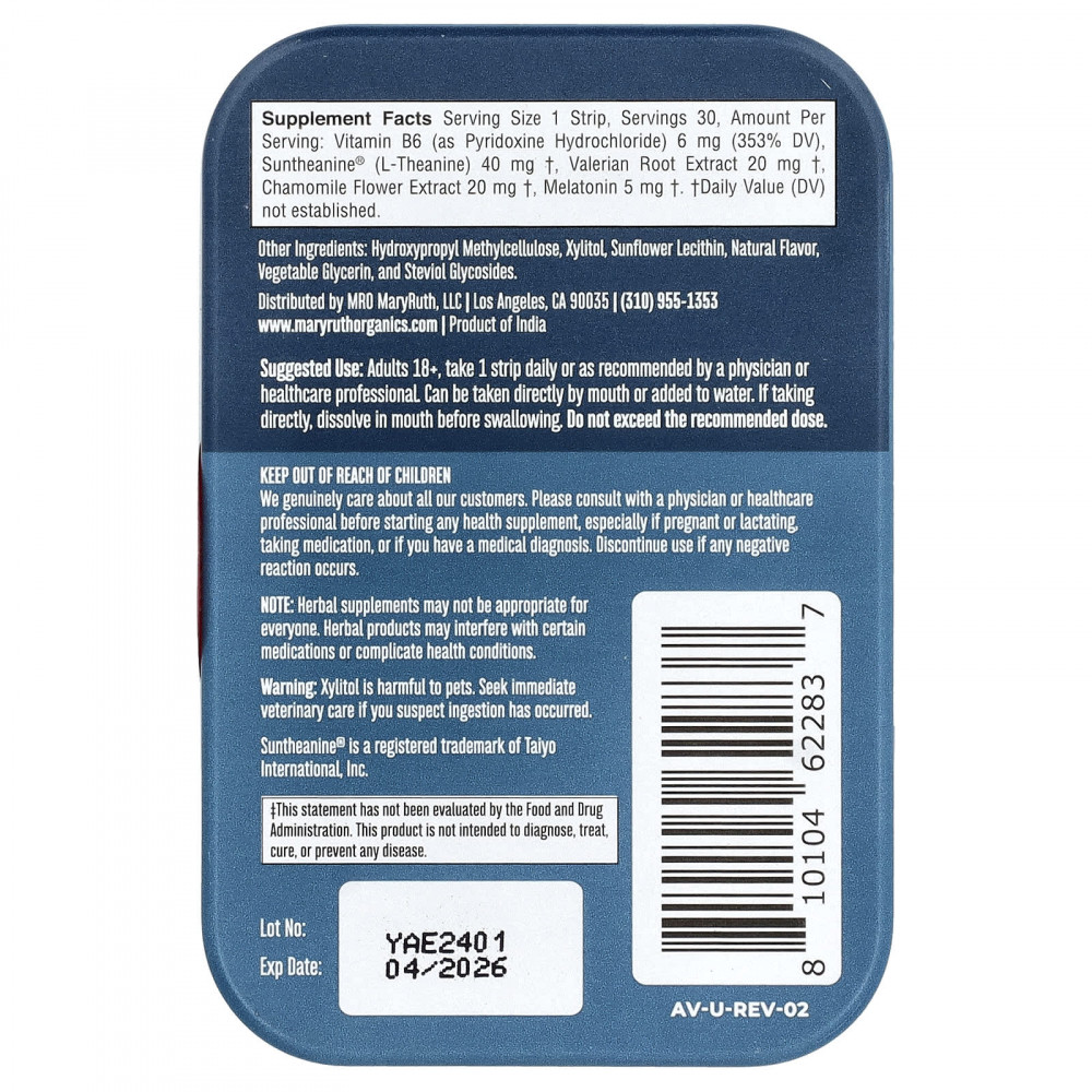 Каждая порция содержит витамин B6, Suntheanine® (L-теанин), экстракт корня валерианы, экстракт цветков ромашки и мелатонин.