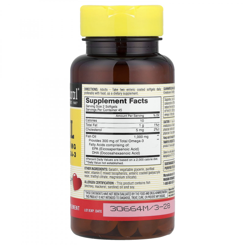 Рыбий жир — один из богатейших доступных источников омега-3 жирных кислот, которые могут поддерживать здоровье сердца и мозга. К сожалению, отрыжка, рыбное дыхание и даже тошнота являются распространенным побочным эффектом, связанным с приемом добавок с рыбьим жиром. Отчасти это связано с тем, что эти добавки содержат высокую дозу концентрированных жирных кислот, которые некоторые плохо переваривают. Наш рыбий жир без отрыжки популярен среди людей, которые хотят получить преимущества рыбьего жира без этих побочных эффектов, поскольку в его составе используются специальные капсулы с кишечнорастворимым покрытием, которые могут снизить частоту отрыжки и других побочных эффектов. А омега-3 могут поддерживать нормальный процесс свертывания крови в организме, а также здоровый уровень холестерина и триглицеридов. Поскольку рыбий жир не является частью обычного рациона, ежедневный прием добавки с рыбьим жиром может обеспечить многие полезные для здоровья свойства жирных кислот омега-3. Mason Natural предлагает широкий ассортимент добавок с рыбьим жиром с омега-3 на любой вкус.