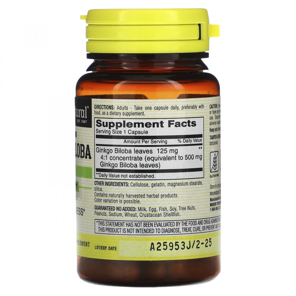 | Листья гинкго билоба концентрат 4:1 (эквивалент 500 мг листьев гинкго билоба) | 125 мг | ** |