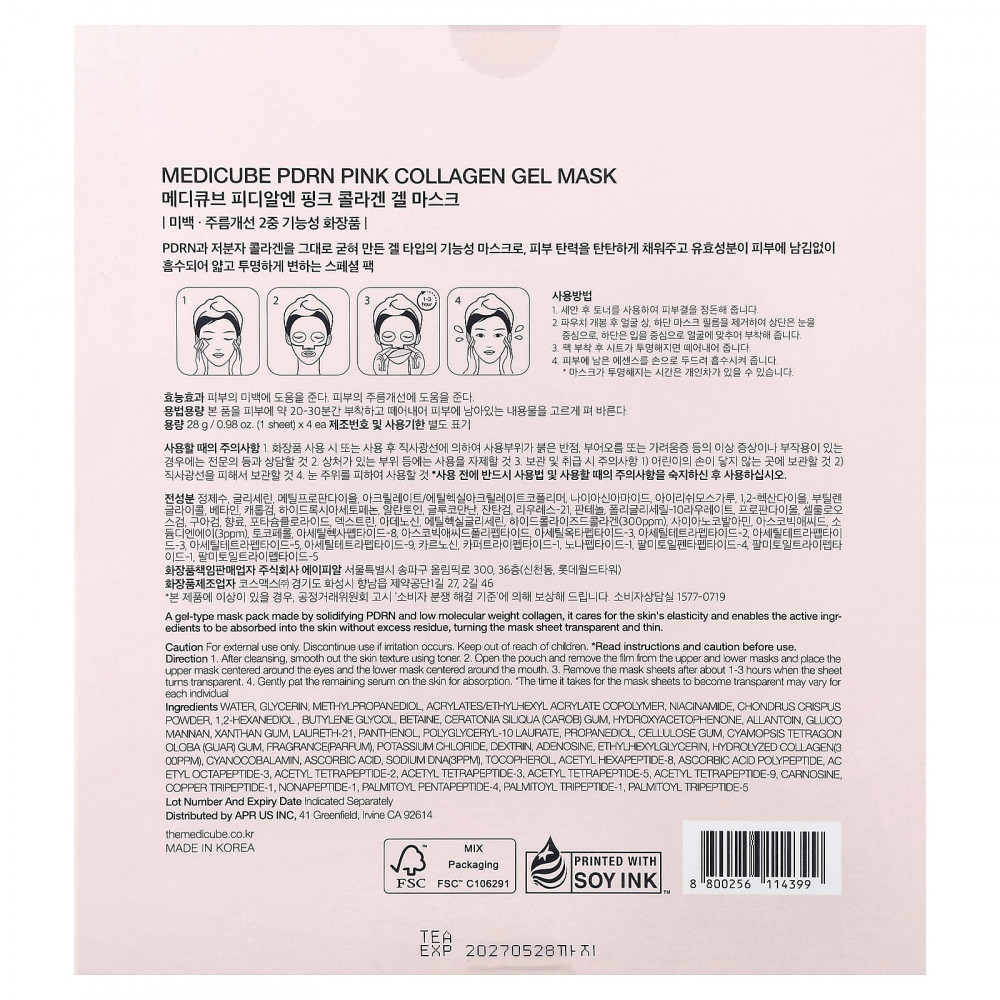 Гелевая маска-маска, изготовленная путем отверждения BDRN и низкомолекулярного коллагена, поддерживает эластичность кожи и позволяет активным ингредиентам впитываться в кожу без излишков, делая тканевую маску прозрачной и тонкой.
