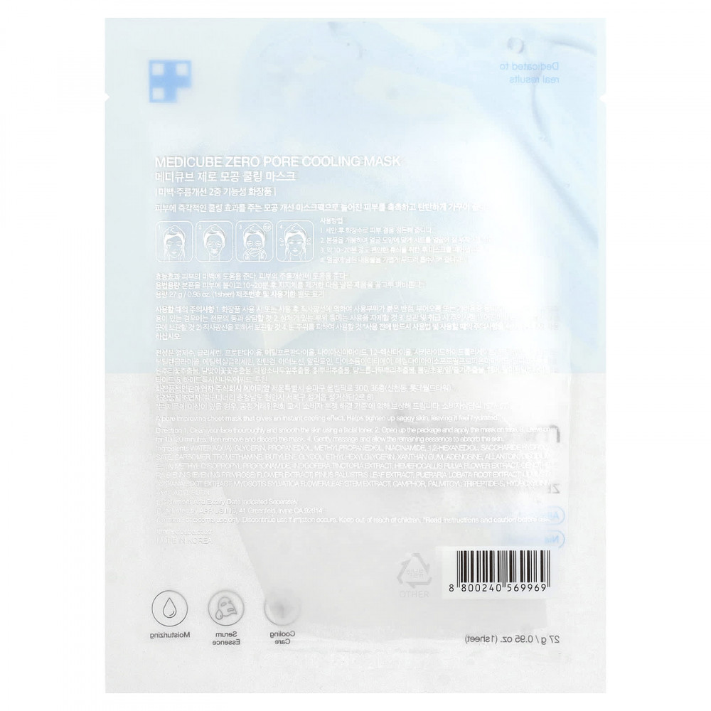 Тканевая маска для очищения пор с мгновенным охлаждающим эффектом. Помогает подтянуть обвисшую кожу, увлажняя ее.