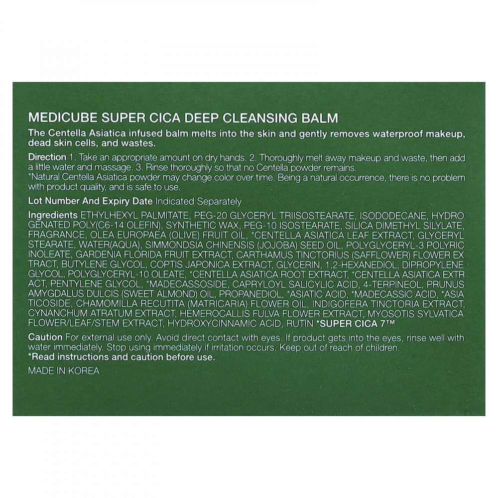 Бальзам с готу колы (Centella asiatica) тает на коже и бережно удаляет водостойкий макияж, омертвевшие клетки кожи и шлаки.