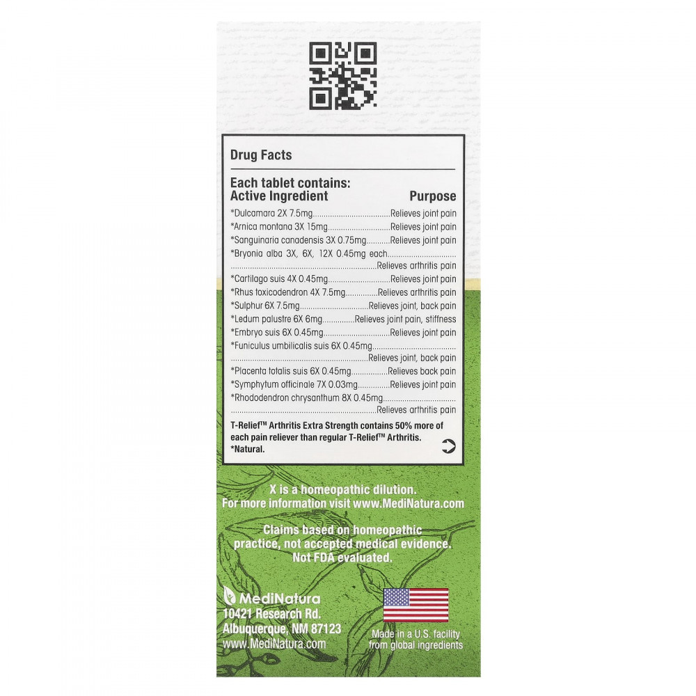 | * Натуральный X - это гомеопатический раствор. T-Relief Arthritis Extrac Strength содержит на 50% больше каждого обезболивающего, чем обычный Arthritis T-Relief. | |