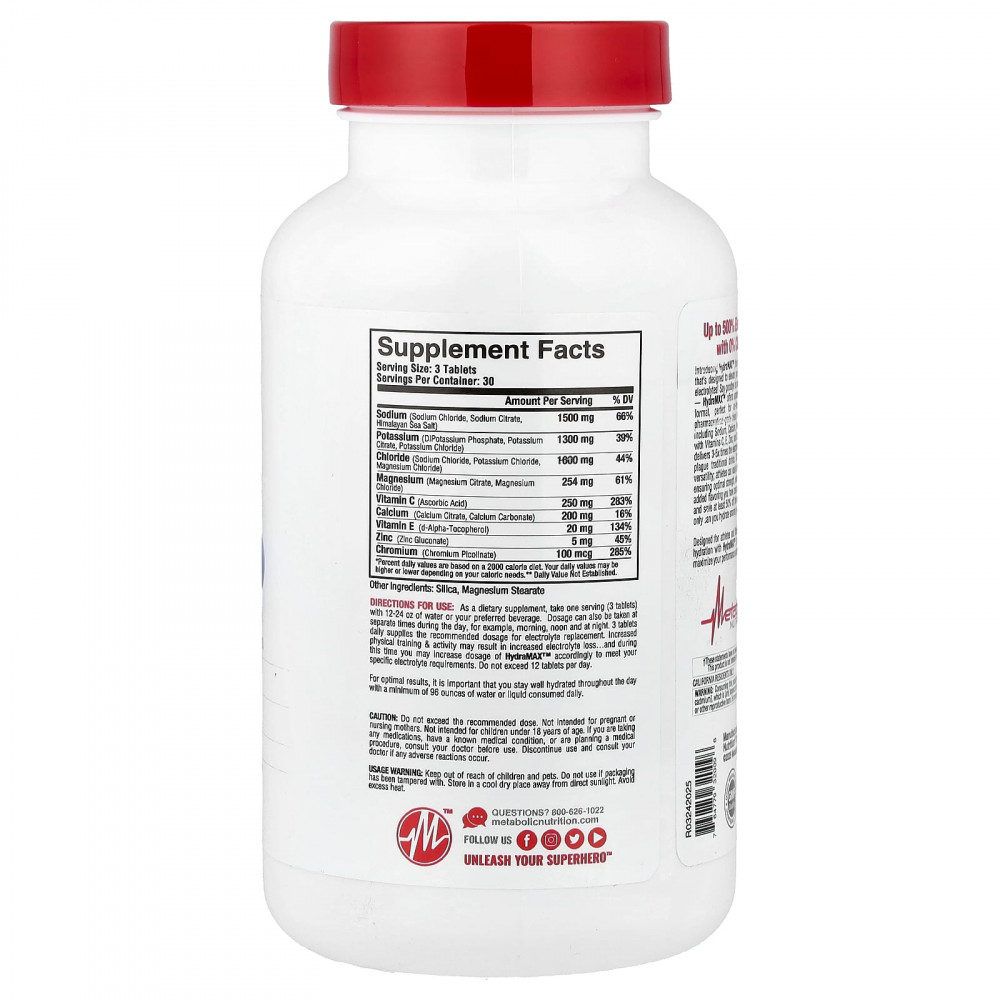 Представляем вам HydraMAX ™, революционную таблетку для гидратации, которую легко глотать, которая предназначена для повышения ваших спортивных результатов благодаря силе электролитов! Попрощайтесь с громоздкими порошкообразными суперсолеными напитками: HydraMAX ™ предлагает непревзойденное удобство в своем формате портативных таблеток, идеально подходящих для активных спортсменов. Содержит чистейшую смесь 5 незаменимых электролитов фармацевтического класса, включая натрий, кальций, калий, магний, хлориды, а также витамины C, E, цинк и хром. Лучше всего то, что в таблетках HydraMAX ™ содержится в 3–5 раз больше электролитов без неприятного вкуса, который часто присутствует в традиционных напитках. Истинная красота HydraMAX ™ заключается в ее универсальности: спортсмены могут легко регулировать потребление в соответствии со своими потребностями, обеспечивая оптимальную силу, выносливость и восстановление. По правде говоря, без ароматизаторов у вас будет ноль калорий, ноль сахара, ноль искусственных подсластителей и вы сэкономите не менее 50% стоимости по сравнению с дорогостоящими электролитными напитками. Таким образом, вы сможете не только эффективнее восполнять водный баланс, но и экономить на этом!