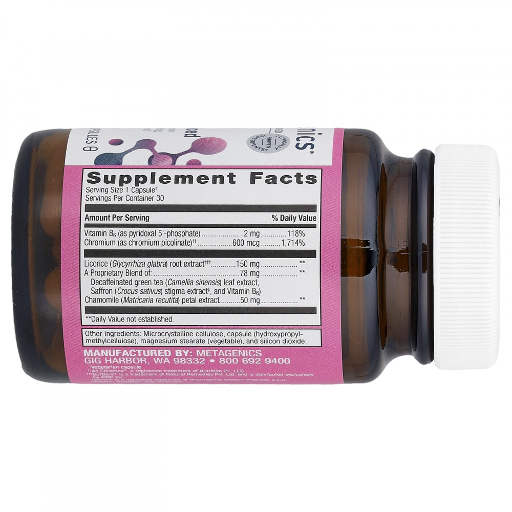 | Запатентованная смесь: Экстракт листьев зеленого чая (Camellia sinensis) без кофеина, экстракт стеблей шафрана (Crocus sativus), витамин B6) | 78 мг | ** |