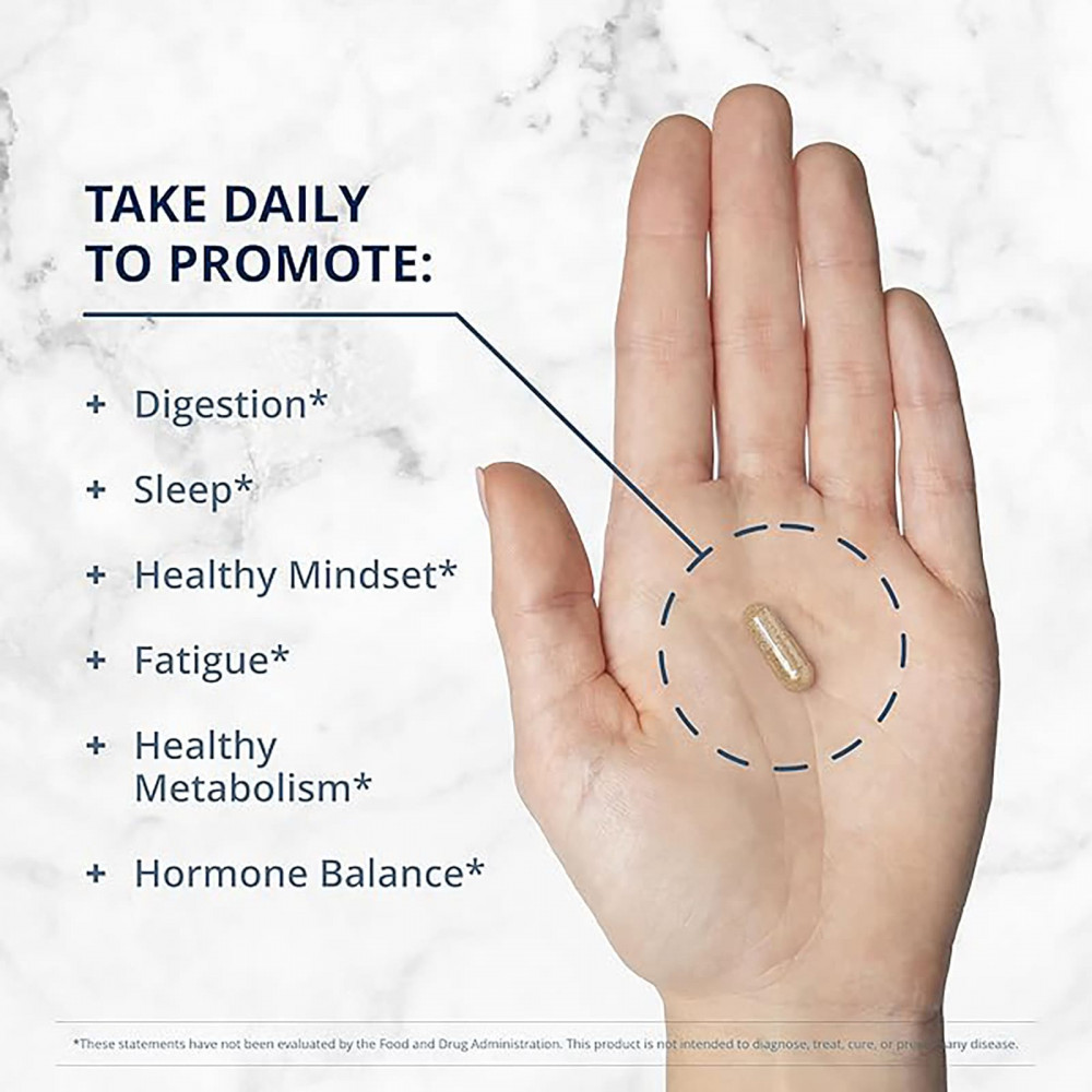 Разработано для устранения 5 распространенных гормональных симптомов: вздутия живота, раздражительности, усталости, нарушений сна и аппетита.
