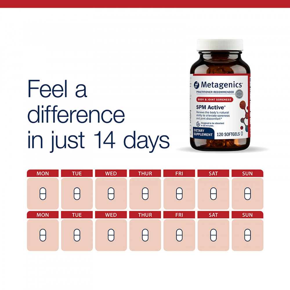 SPM Active® разработан для воздействия на коренные причины болезненных ощущений, поддерживая естественную способность организма успокаивать и минимизировать дискомфорт. Разработано, чтобы облегчить болезненные ощущения в течение двух недель. Принимайте ежедневно для максимальной пользы.