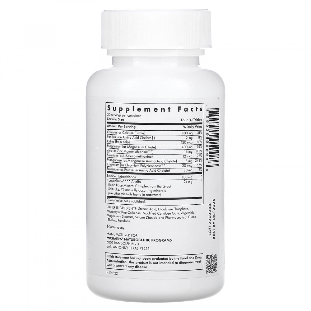 | Люцерна Concentrace® (Комплекс микроэлементов из ионного комплекса из большого Соленого озера, 72 минерала природного происхождения, а также другие минералы, содержащиеся в морской воде. | 24 мг | * |