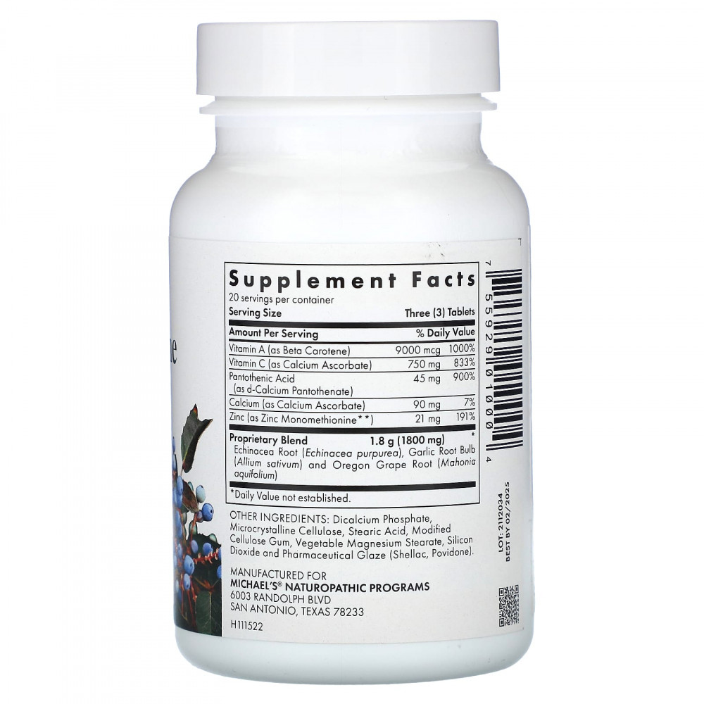 | Запатентованная смесь корень эхинацеи (Echinacea purpurea), корень чеснока (Allium sativum) и корень магонии падуболистной (Mahonia aquifolium) | 1,8 г (1800 мг) | * |